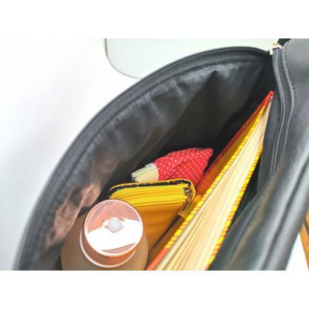 Je dovolj prostoren za A4 format (idealno za delo, šolo ali prosti čas), ima notranji žep z zadrgo ter še dodatni zunanji žep na hrbtni strani.