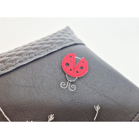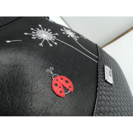 Na sprednji strani ga krasi ročno izdelan motiv Ladybird Dandelion in obvezen Popikoki ptiček – za lepši dan. 🐞💛